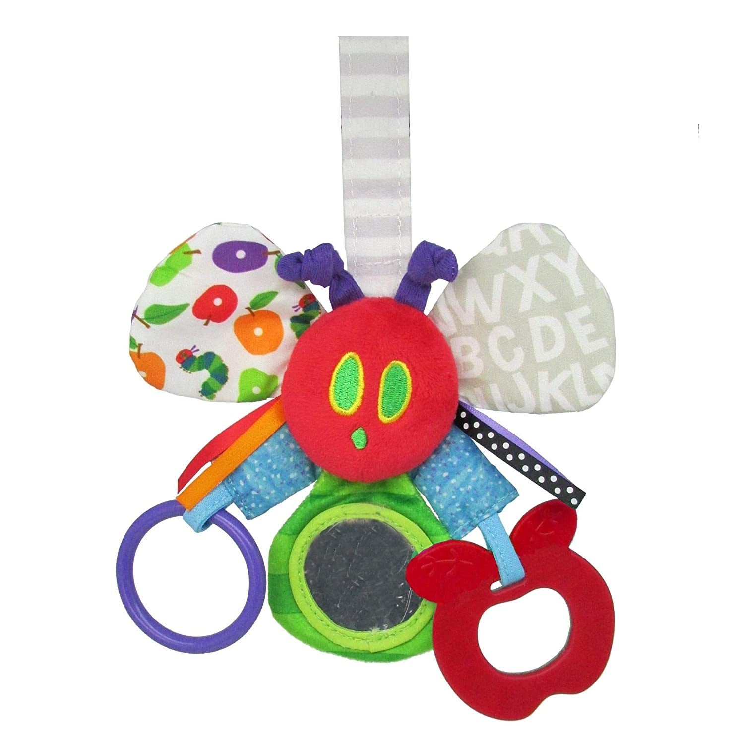 Eric Carle is one of the most celebrated children's book authors and illustrators of all time, with over 103 million copies of his books sold worldwide. Inspired by the classic book, The Very Hungry Caterpillar, this The World of Eric Carle The Very Hungry Caterpillar Mirror Teether Rattle will keep little ones entertained, happy and soothed with multiple features for interactive play.