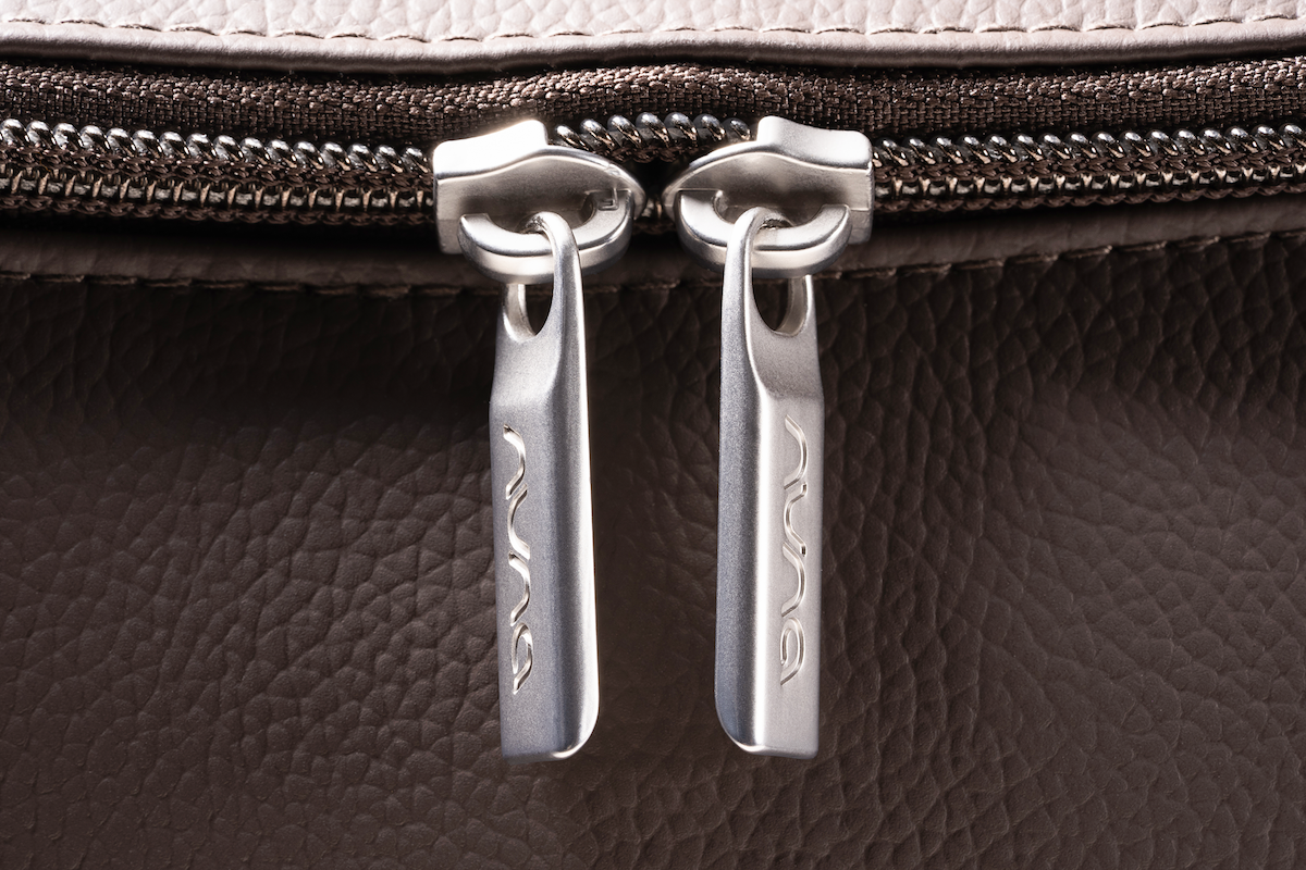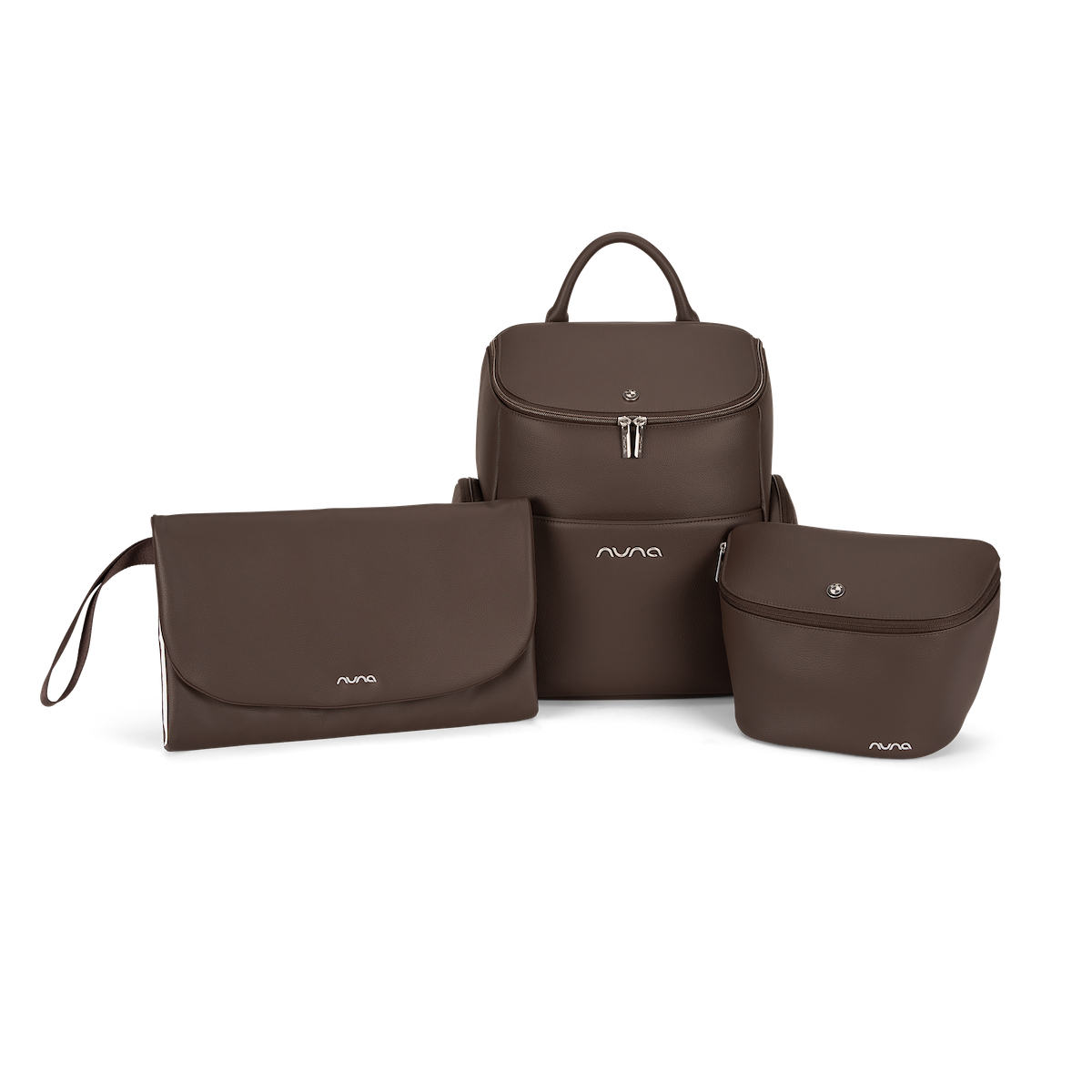 - Embroidered Nuna logo on toiletry pouch and changing pad clutch Includes dust bag for added protection when storing
