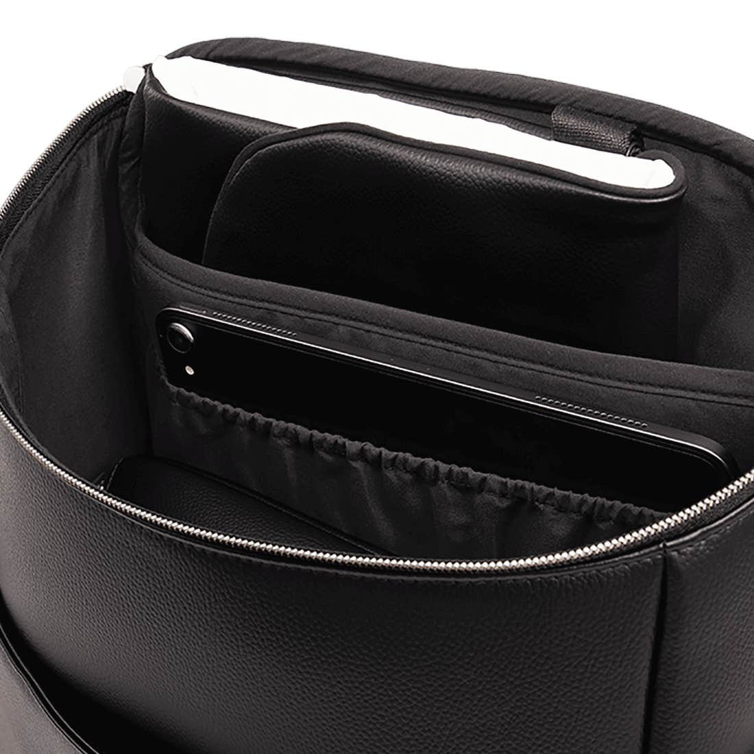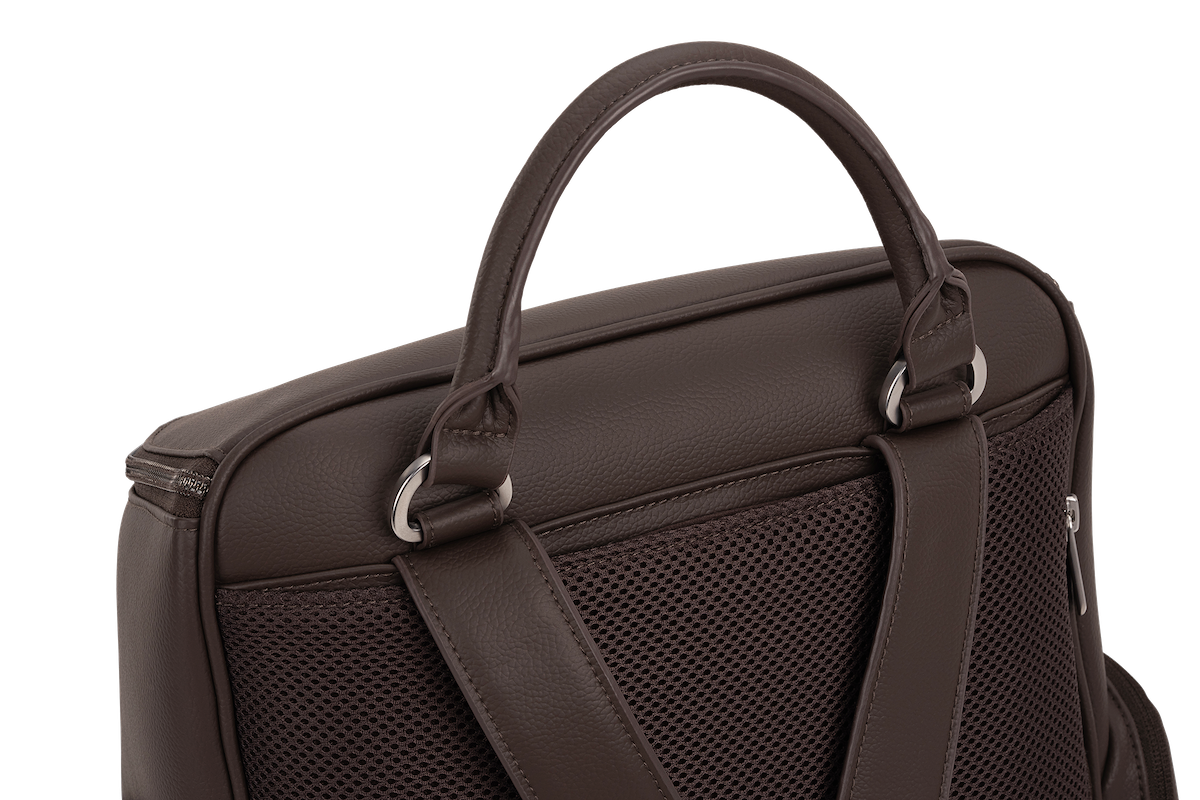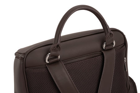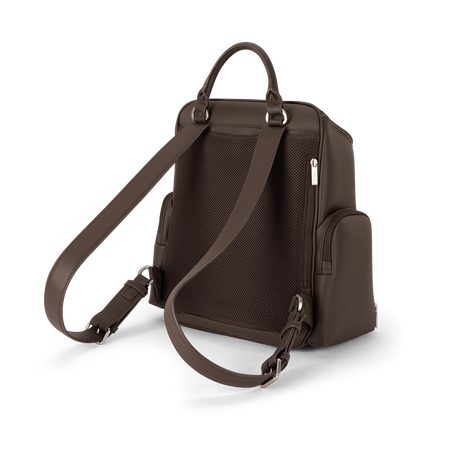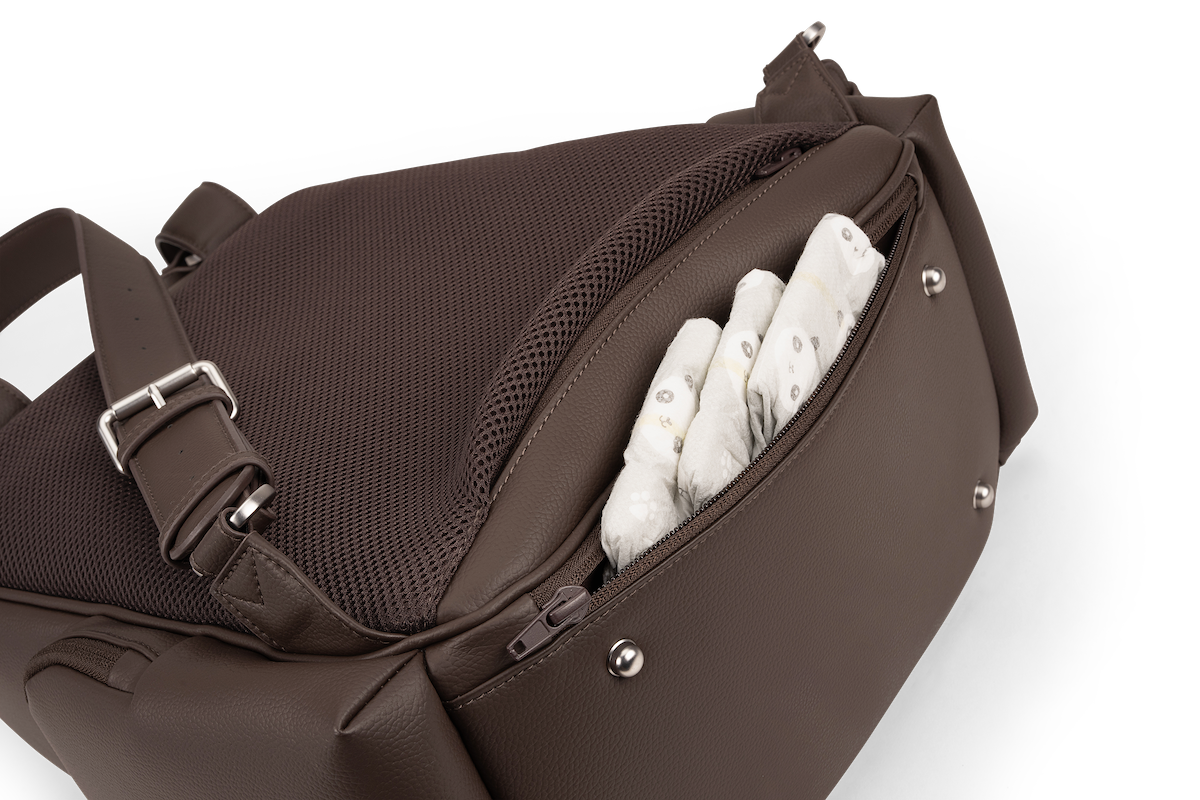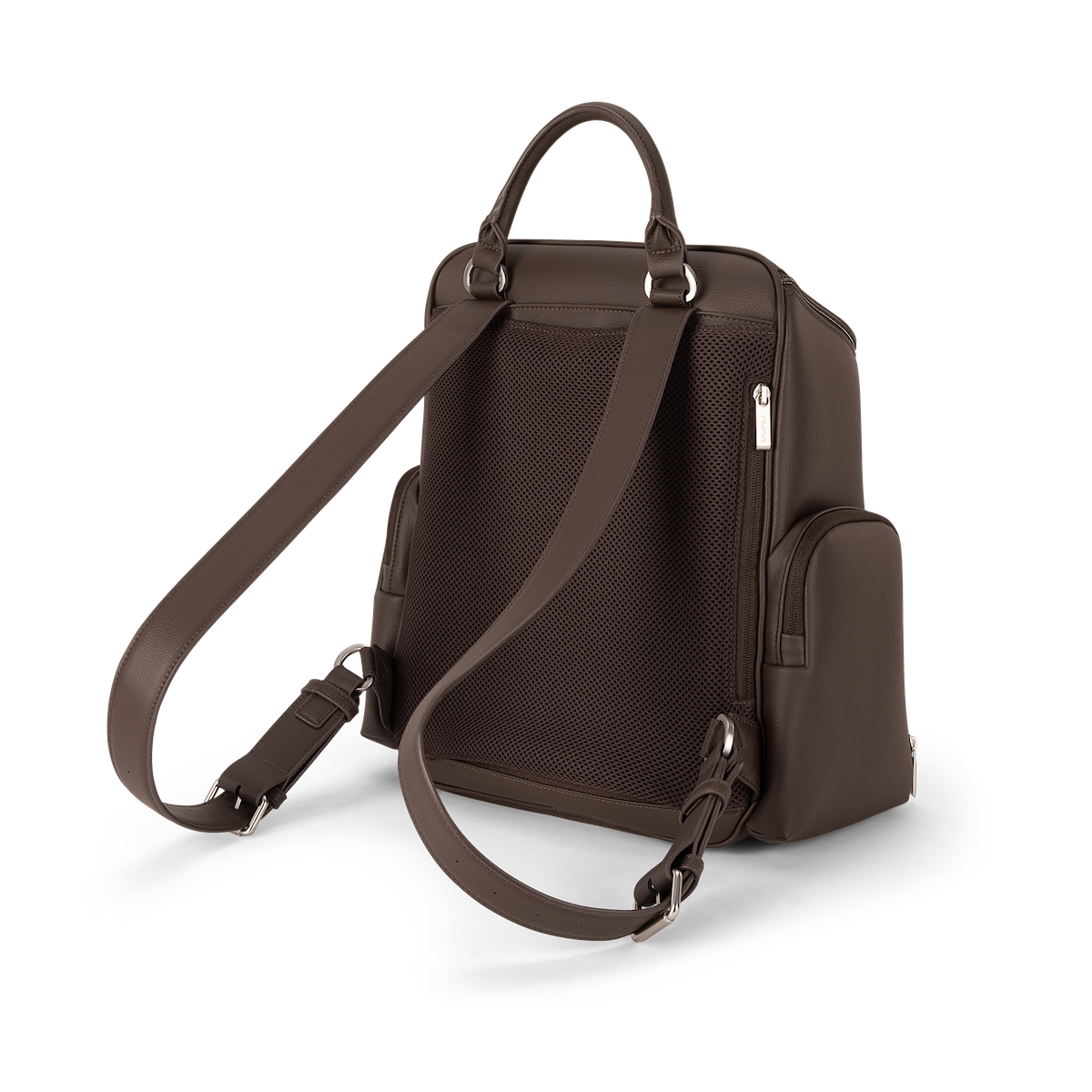 The Essential bag redefines everyday luxury with its chic leatherette styling and versatile parenthood functionality. Crafted as a multi-tasking backpack that also serves as a diaper bag, it features a laptop-friendly design with a thoughtful array of exterior and interior pockets, a handy changing pad clutch, and a luggage trolley sleeve for travel convenience.