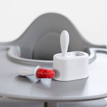 Finally, a popsicle mold made for infants! ezpz Tiny Pops are portion-sized at ½ oz and have a short, fat, round handle for baby’s grasp. To use, simply freeze breast milk, formula or a smoothie for 4+ hours and (voila!) your baby has nourishment and a treat for their senses! 4 months+