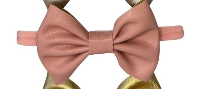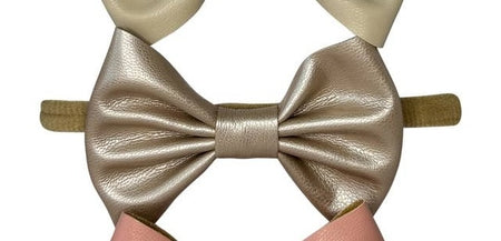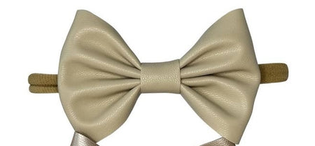Add a touch of cuteness to your baby's outfit with our Faux Leather Baby Bowtie Headband. Made with vegan leather, this bow headband adds a playful pop to the matching thin and stretchy headband. Perfect for stylish mini fashionistas!