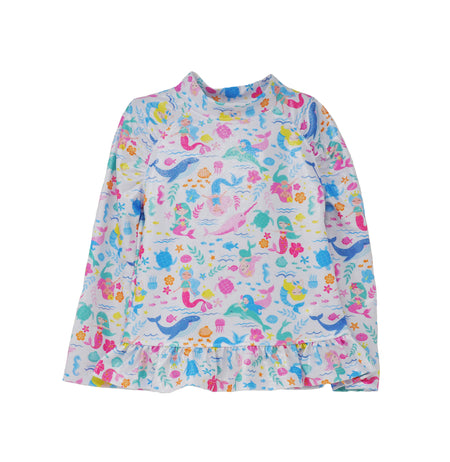 UPF 50+ Ruffle Rash Guard (Recycled): Your little one will be the best dressed on the beach in this Original Flap Happy Rash Guard with ruffles. This UPF 50+ fabric is not only stylish, but will also keep your little one protected from the harsh rays of the sun! Don't forget to get a Flap Happy hat and swimsuit to match your rash guard.