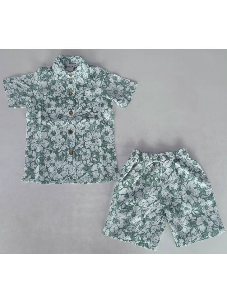 Floral Printed Boys Shirt & Shorts Set