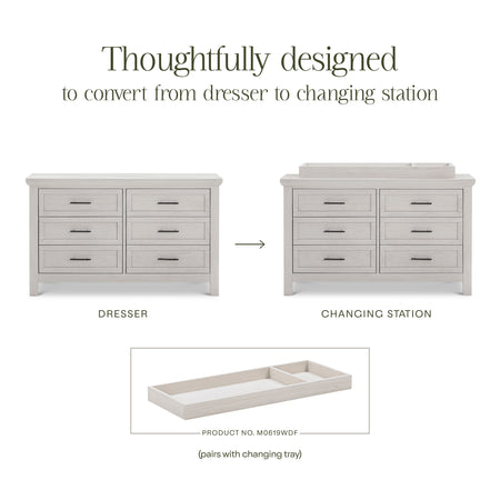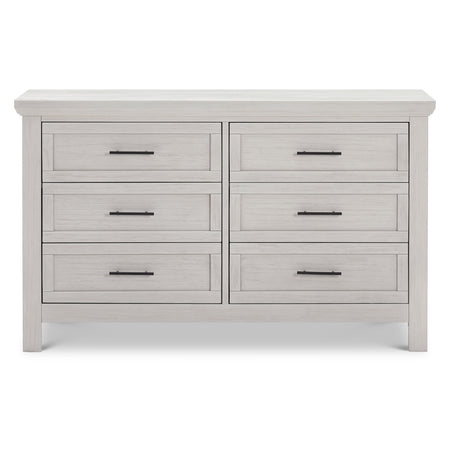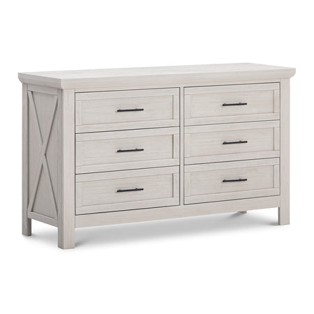 The Emory Farmhouse 6-Drawer Dresser is the perfect companion to the Emory Farmhouse 4-in-1 Convertible Crib. With matching thoughtful X-brace details and a beautifully textured finish inspired by hand-crafted barn doors, the double dresser is the perfect accent piece to complete your rustic nursery.