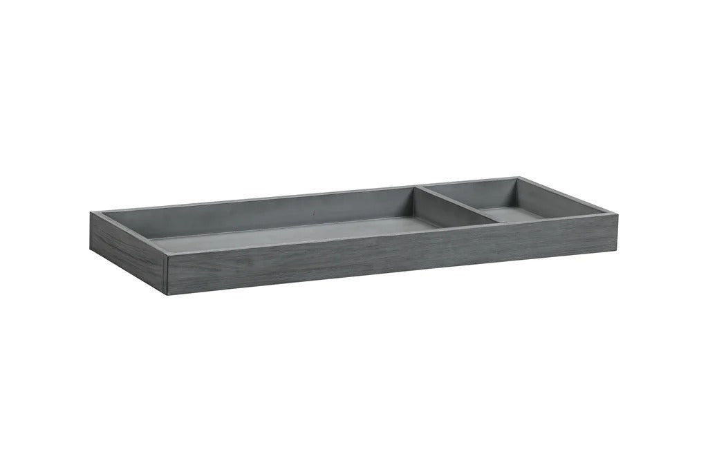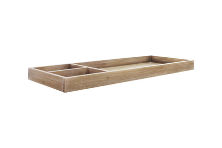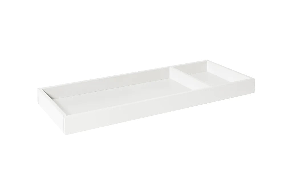 The Namesake Removable Top Changer  attaches to the top of your Double Dresser and allows it to be used as your baby changing station. The Namesake Removable Tray has three compartments, this tray will seamlessly convert your baby's dresser into a changing station that can keep your changing necessities close at hand. The changing tray securely affixes to your Namesake double-wide dresser with safety brackets that are concealed in the back of the dresser. Once you are out of the diaper-changing stage, the tray can be easily removed to allow your dresser to grow with your child.