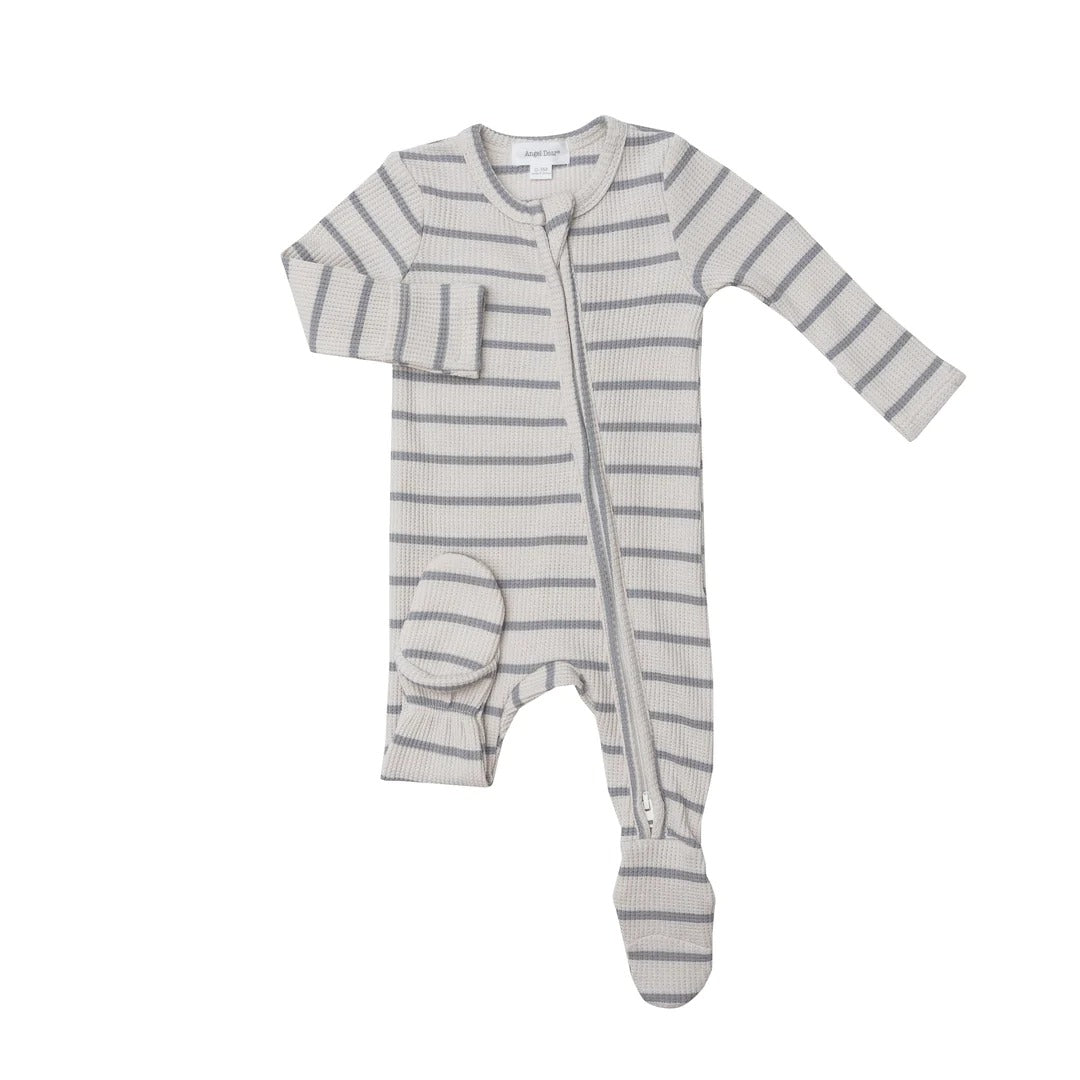 ANGEL DEAR FRENCH STRIPE SLEET & WHITE SAND THERMAL ZIPPER FOOTIE