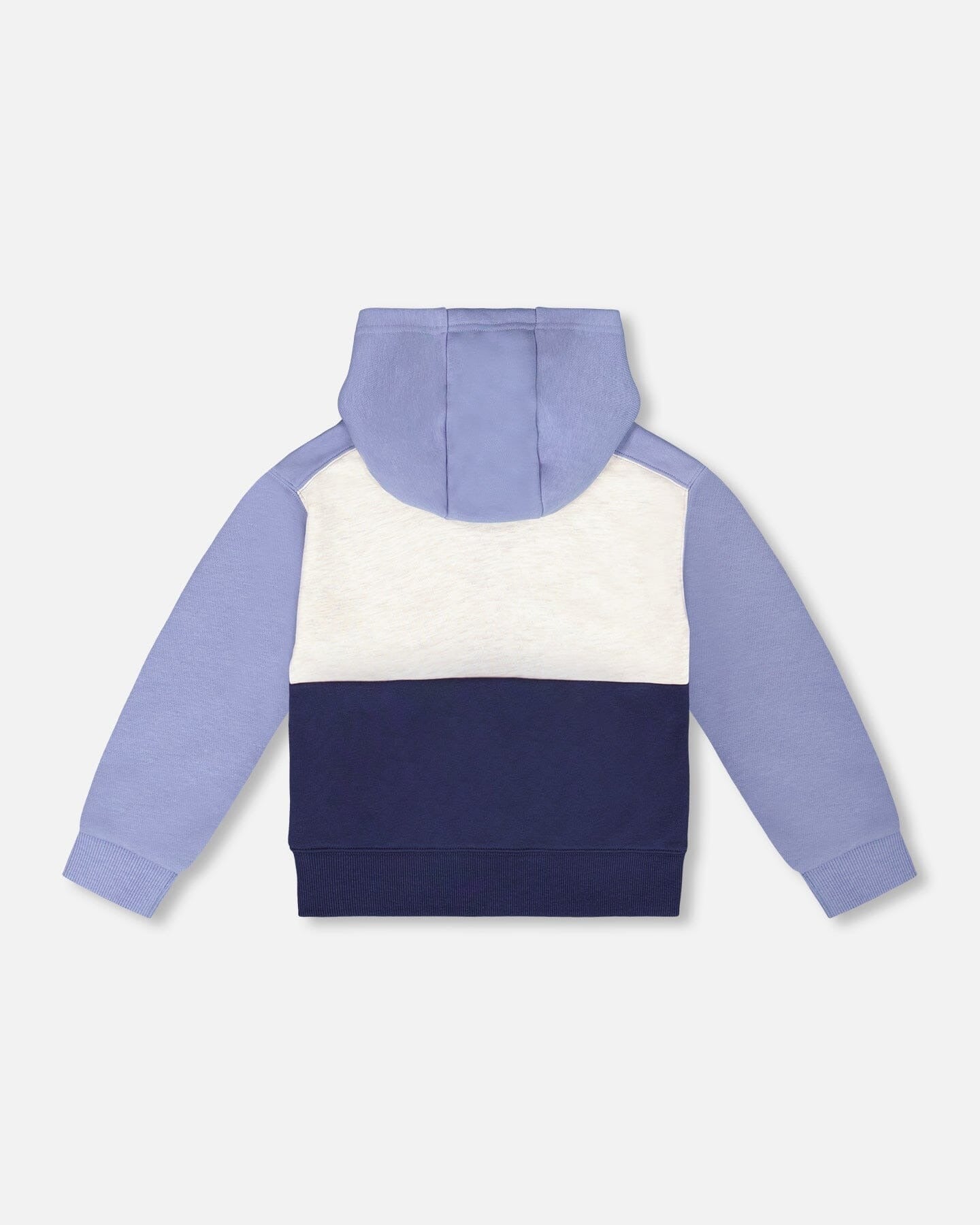 DEUX PAR DEUX FRENCH TERRY COLOR BLOCK FULL ZIP HOODIE SWEATSHIRT BLUE, NAVY AND CREAM
