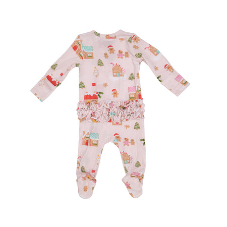 ANGEL DEAR GINGERBREAD VILLAGE PINK RUFFLE ZIPPER FOOTIE