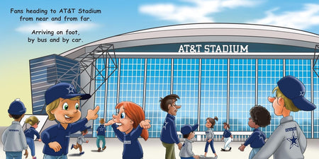 Good Night, Cowboys follows in the long tradition of ‘good night’ stories loved by children everywhere. The bedtime story takes children through the day of the big game – good morning Texas as everyone wakes up in anticipation, good afternoon Cowboys fans as everyone heads to AT&T Stadium, good evening Cowboys as the teams take the field and game begins, and of course good night everyone as we say good night to AT&T Stadium, the players and young fans ‘dreaming of their NFL debut.’ Adorable illustrations and accurate drawings of AT&T Stadium and the Cowboys only found in Good Night, Cowboys. A touchdown for every young Cowboys fan. Officially licensed by the NFL and Officially licensed by AT&T Stadium.