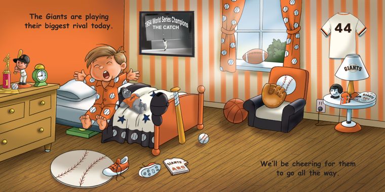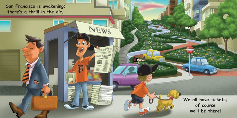 Good Night, Giants follows in the long tradition of ‘good night’ stories loved by children everywhere. The bedtime story takes children through the day of the big game – good morning San Francisco as everyone wakes up in anticipation, good afternoon Giants fans as everyone heads to AT&T Park, good evening Giants as the teams take the field and game begins, and of course good night everyone as we say good night to AT&T Park, the players and young fans ‘dreaming of their major league debut.’ Adorable illustrations and accurate drawings of AT&T Park and the Giants only found in Good Night, Giants. A home run for every young Giants fan. Officially licensed by Major League Baseball.