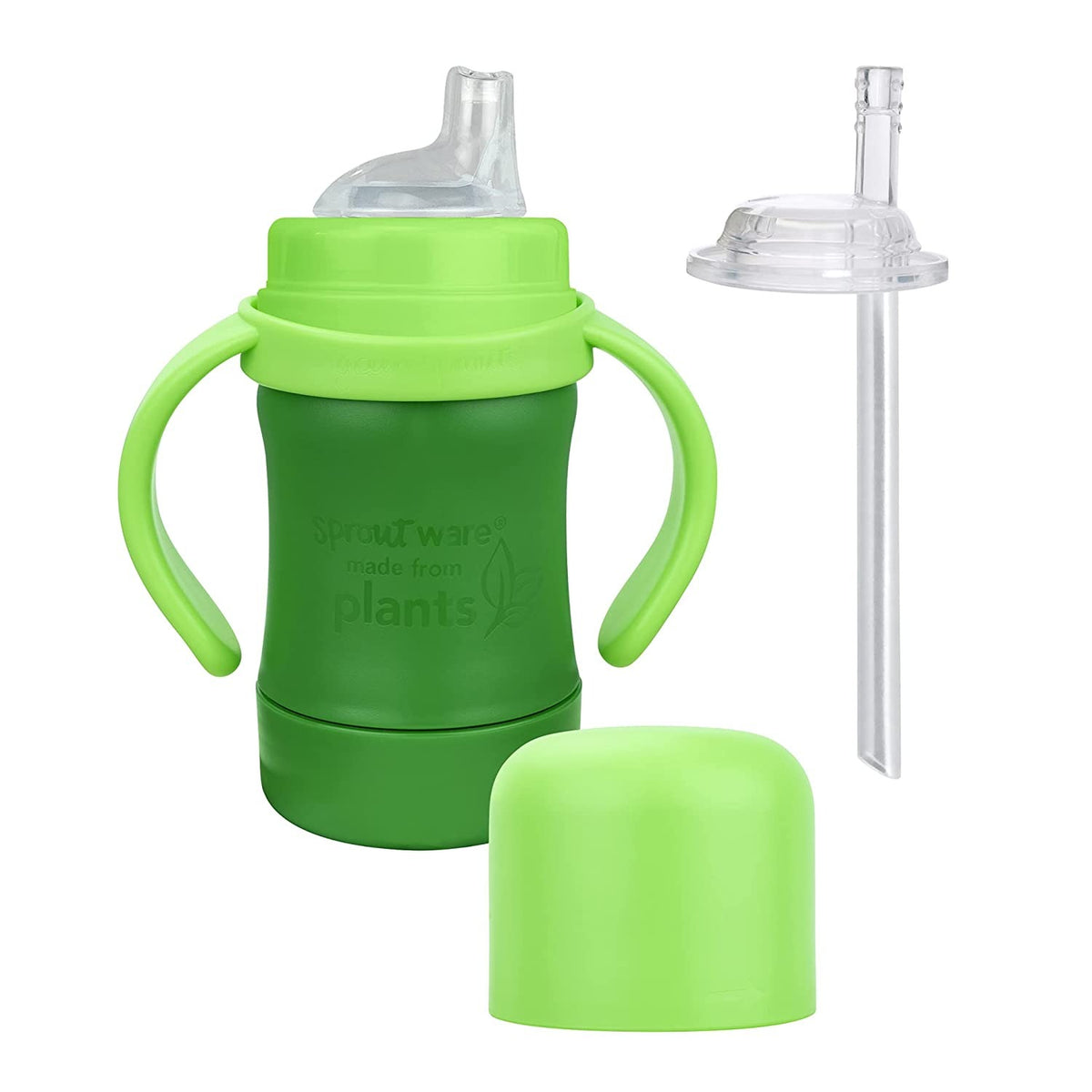 The innovative Sprout Ware Sip & Straw Cup made from Plants from green sprouts is crafted of non-petroleum plant-plastic and silicone to help avoid harmful chemicals. This transitional sippy/straw cup is designed to grow with your baby.