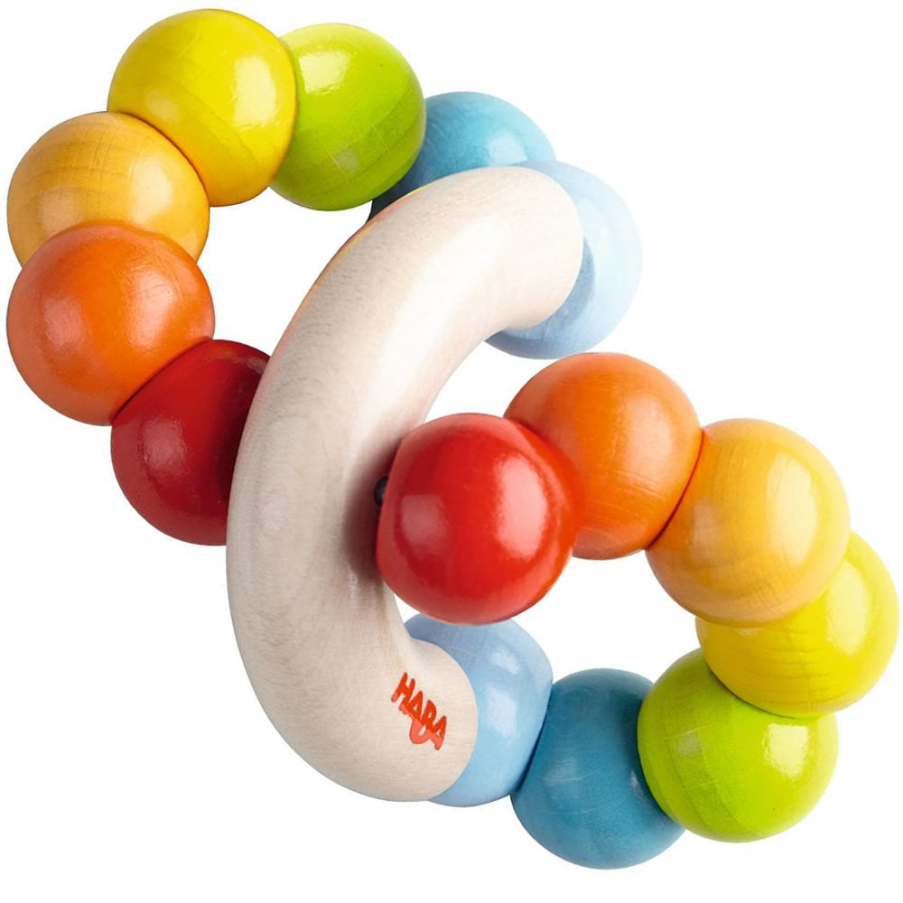 With the Haba Color Whorl Clutching Toy, your little one will be delighted with the Color Whorl Clutching Toy from HABA! This adorable clutching toy features naturally colored wooden pieces with brightly colored wooden balls connecting them! Made from maple, beech wood and plastic and colored with a water-based, non-toxic stain. Perfect for ages 10 months and up!