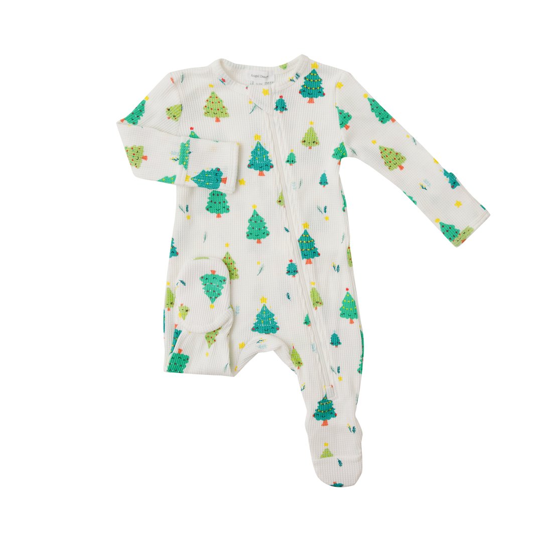 Introducing the Angel Dear Happy Christmas Tree Zipper Footie. Our signature front zipper footie makes changing your baby a Snap! (or as we like to say a Zip!) Super soft bamboo fiber fabric and Angel Dear's signature prints will keep the oohs and aahs a- coming.What makes our footies special. Why the details of course!