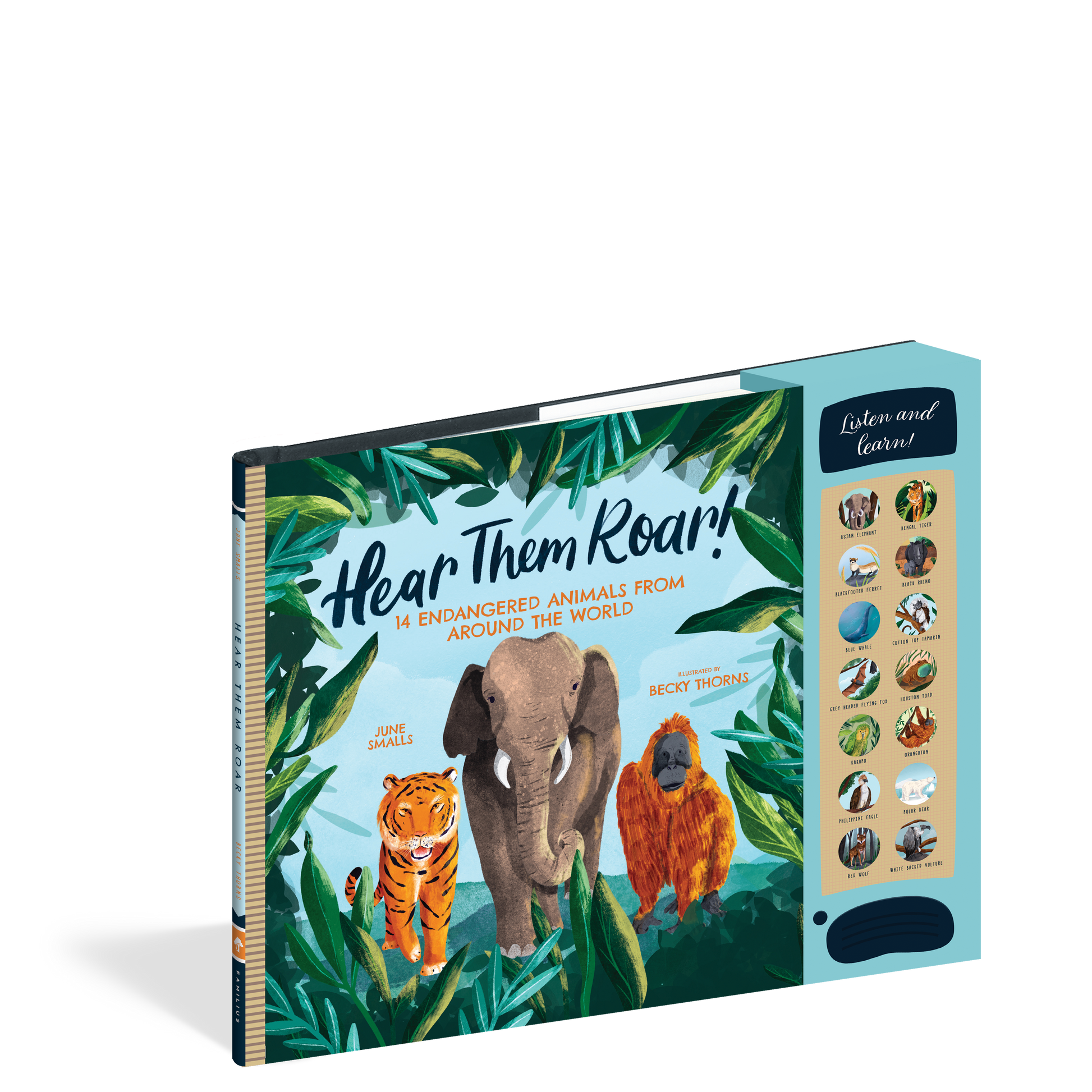 All around the world, animals that were once thriving are now endangered, from the black-footed ferret to the kakapo. Eventually, these amazing animals could be lost. With this fully illustrated guidebook + sound pad, kids can learn about the calls, snorts, squeaks, and roars of 14 endangered animals, discover the characteristics that make them special, and see how we are helping bring them back from the edge of extinction. Hear Them Roar: 14 Endangered Animals from Around the World will make sure these animals are around for many generations to come!