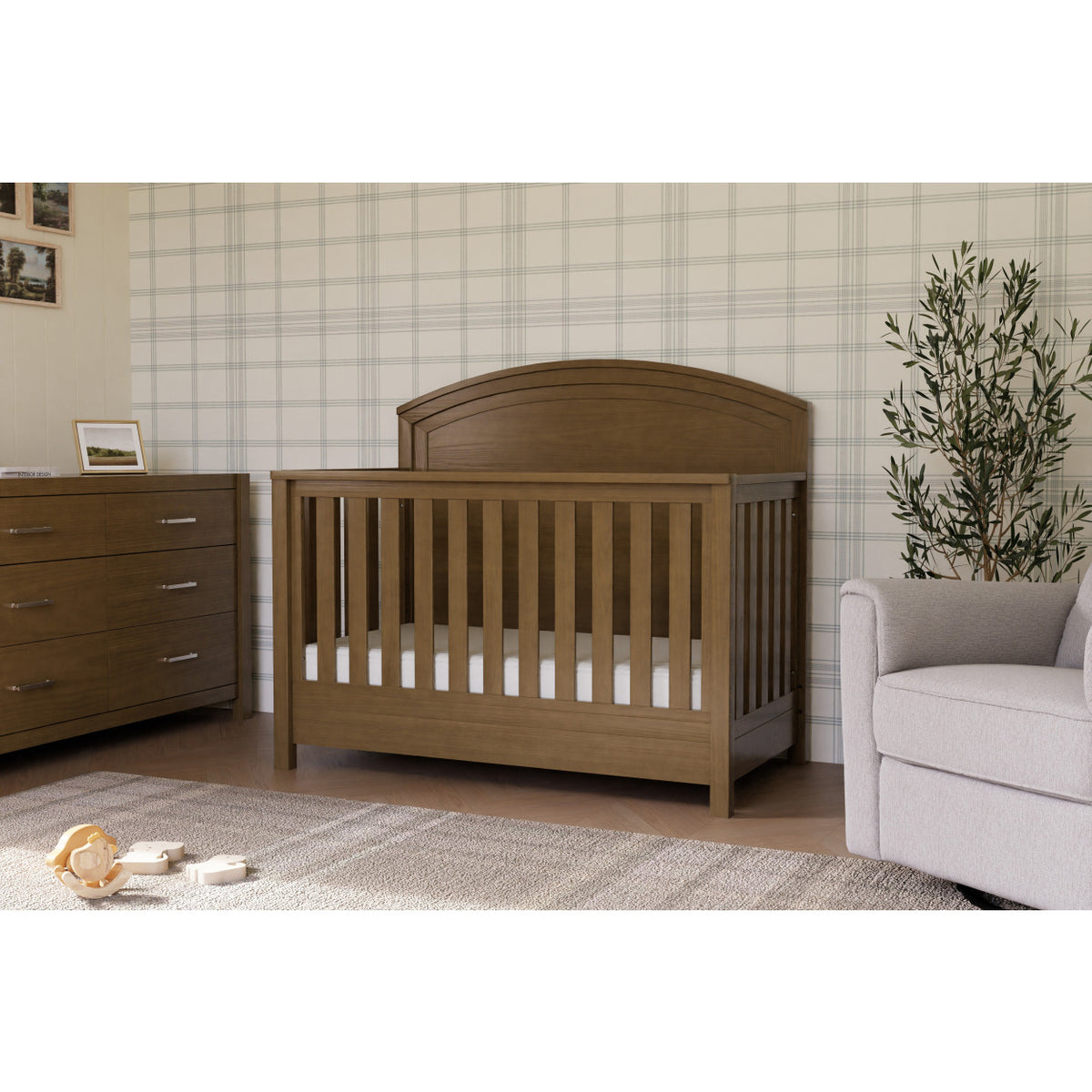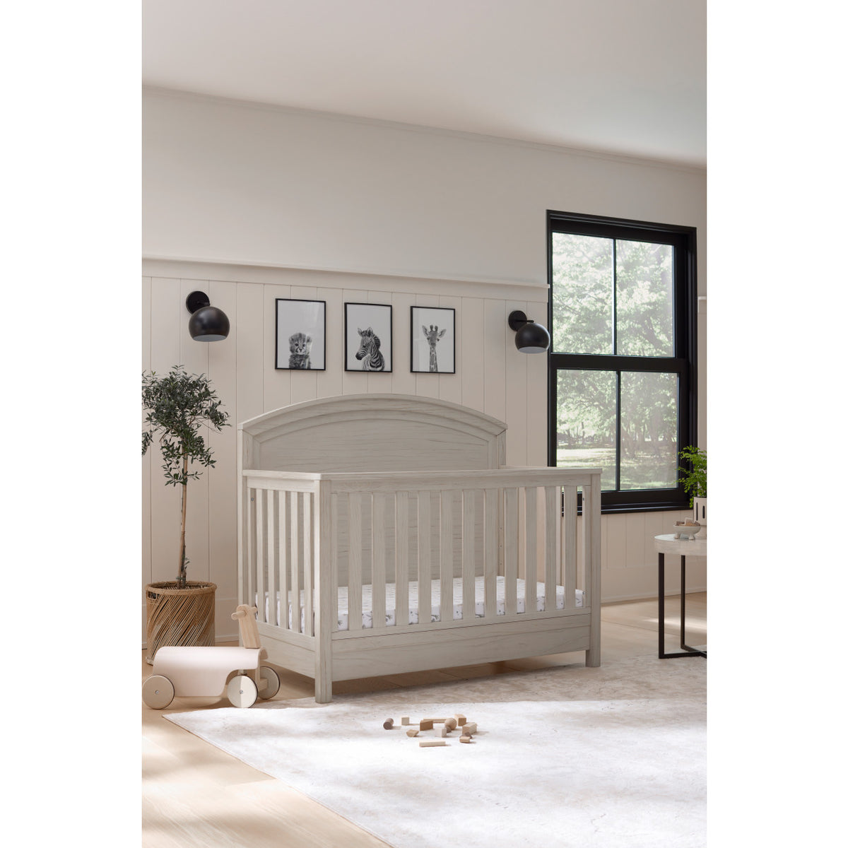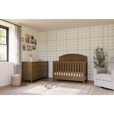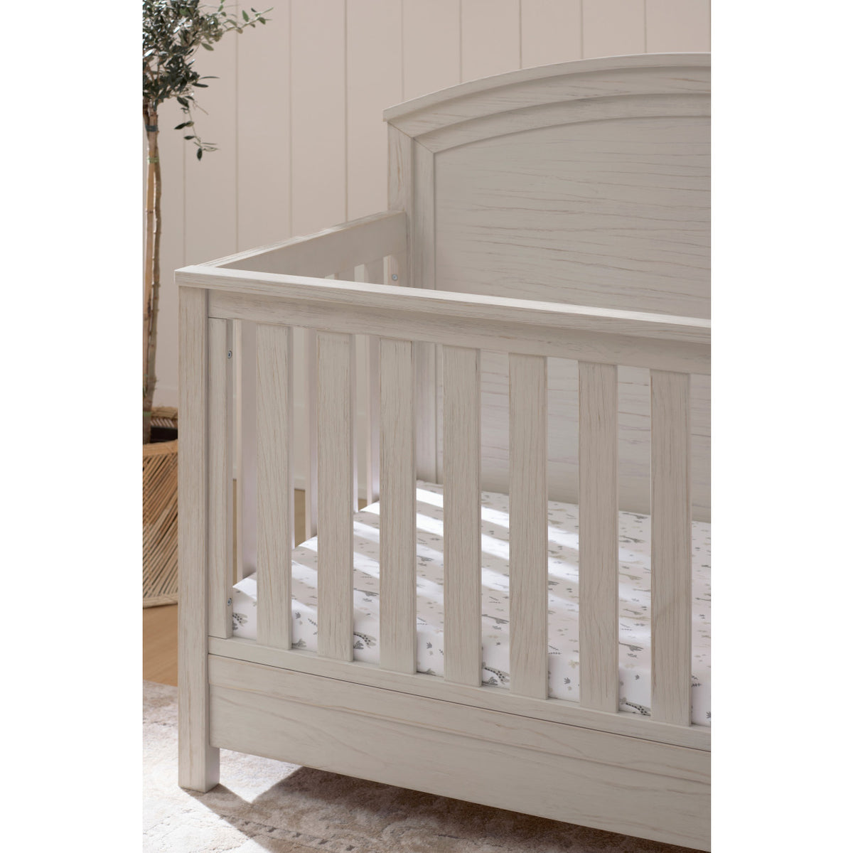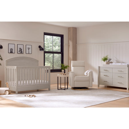 Lean into the modern farmhouse aesthetic with the Namesake Hemsted 4-in-1 Convertible Crib. Featuring a beautifully textured finish, clean silhouette, and traditional curved headboard, this crib will perfectly complement your home. Built to seamlessly transition from newborn to toddler, the crib has four different mattress heights and easily converts to a toddler bed, daybed and full-size bed. Complete your nursery with the Hemsted 6-Drawer Dresser.