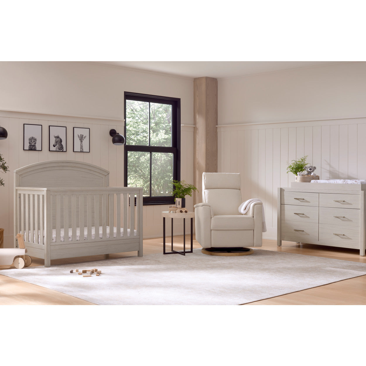 The Namesake Hemsted Convertible Crib + Dresser is the perfect set for your new arrival and features the coordinating Hemsted Convertible Crib & matching 6 Drawer Dresser. Add the optional changer tray and your favorite Namesake Glider / Recliner to complete your nursery!