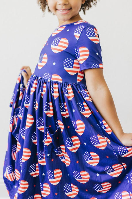 MILA & ROSE I HEART THE USA SHORT SLEEVE POCKET DRESS