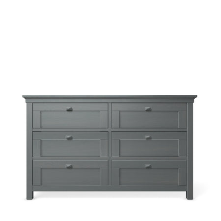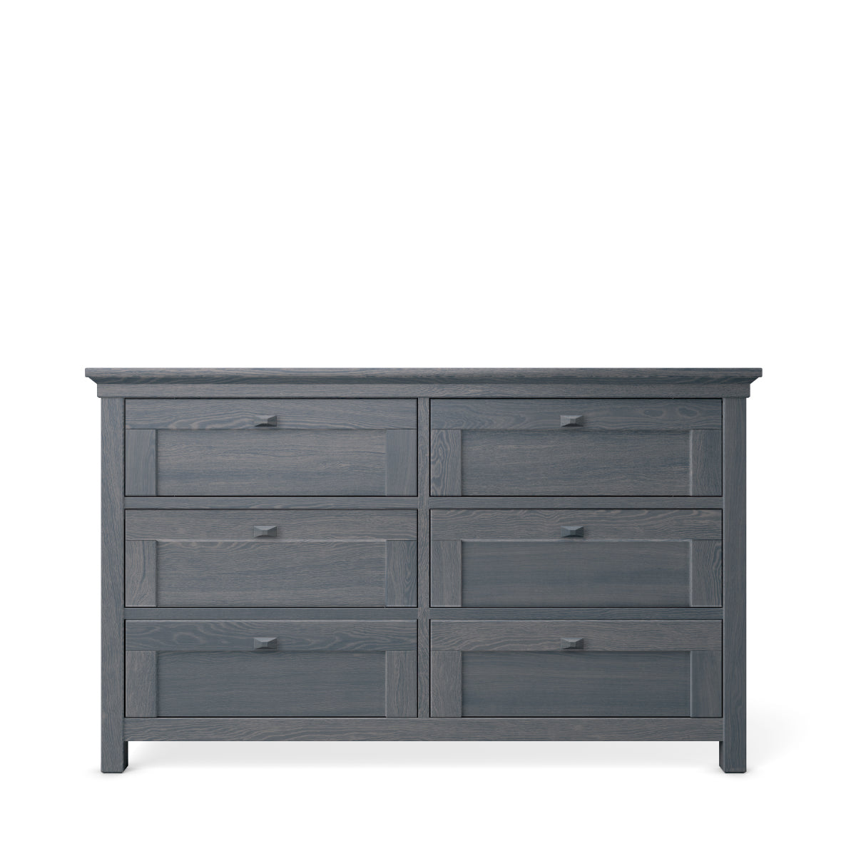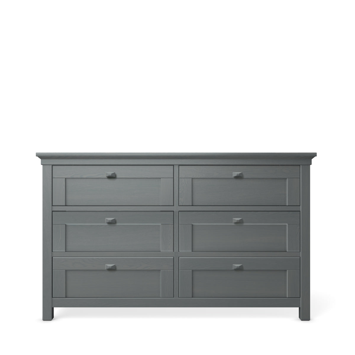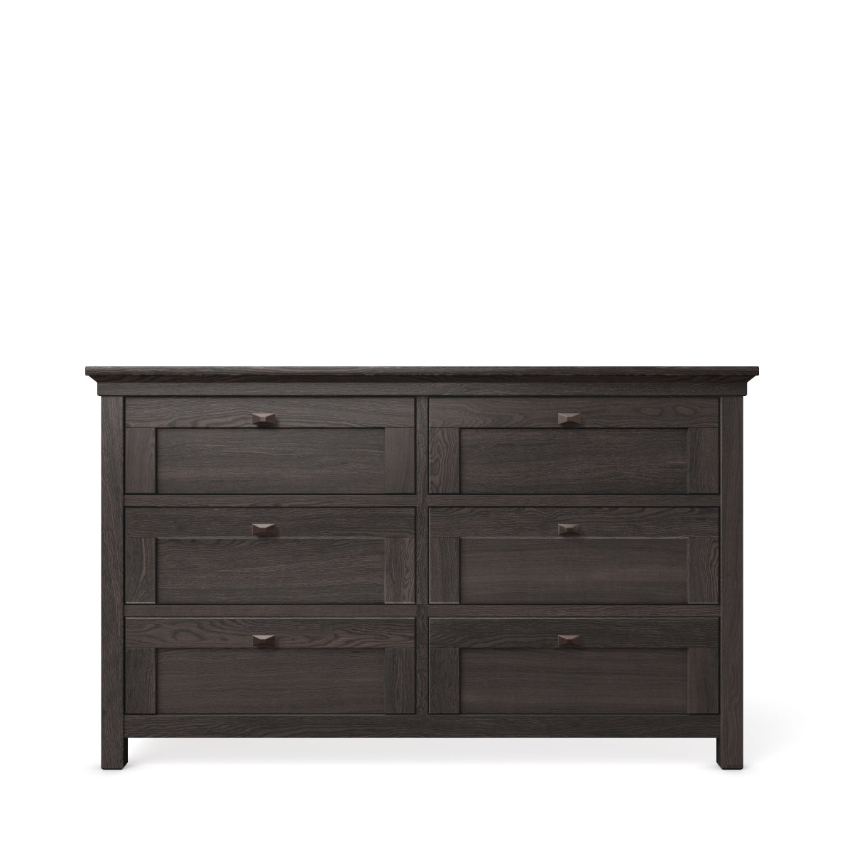 The Romina Karisma double dresser offers the most amount of drawer space and long term value. Wide design with large drawers and top surface storage space, it is very versatile and it can be used as a diaper changing station or for clothing and accessory storage. Karisma cases are standardly equipped with wooden diamond shaped handles. There are also over 17 different finish options and treatments to customize and make it your own. The design exudes refinement through simplicity and solid construction. Karisma case items are standardly equipped with wooden diamond shaped handles.