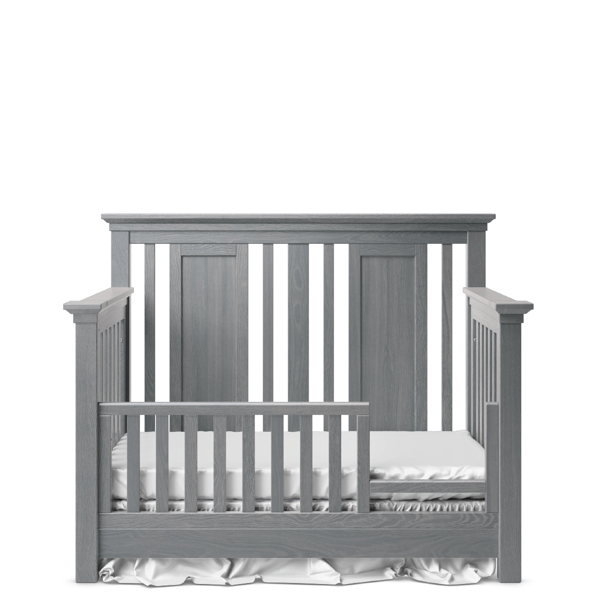 Toddler rails are crib specific and designed to preserve and continue the overall crib design through the conversion stages. Adding some extra protection against toddlers rolling out of the cib, it makes safety look stylish. This toddler guard rail is compatible with Karisma convertible cribs (5501/5502).