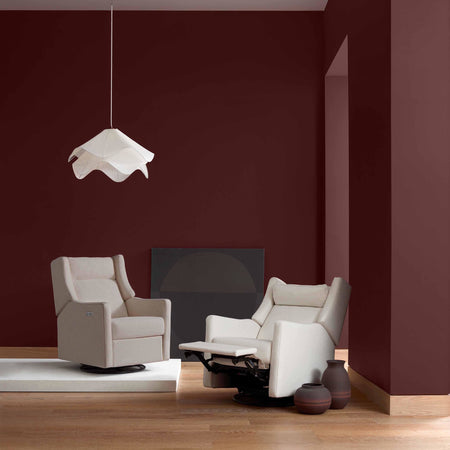 Our #1 best selling recliner just got an upgrade! The Kiwi Plus has all the best features of our popular Kiwi Electronic Recliner & Glider - now with an adjustable headrest for even more personalized comfort! Designed to cradle you in relaxation, this stylish recliner features a smooth swivel and gentle gliding motion, making it perfect for cozy moments with your baby or unwinding after a long day. The new adjustable power headrest provides extra support, ensuring that no matter your position, you’ll always be sitting comfortably. With its sleek, modern design and plush cushioning, the Kiwi Plus seamlessly blends style with function, enhancing any nursery or living space.