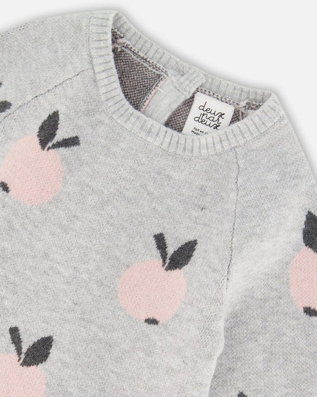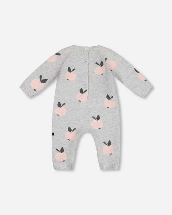 DEUX PAR DEUX KNITTED JACQUARD JUMPSUIT GRAY WITH APPLES