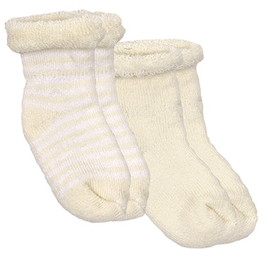The Kushies Terry Newborn Socks 2 Pack in Yellow stay on and keep little toes warm on even the coldest winter night. Set of 2 includes 1 solid & 1 striped set. Recommended Usage 0-3 Months