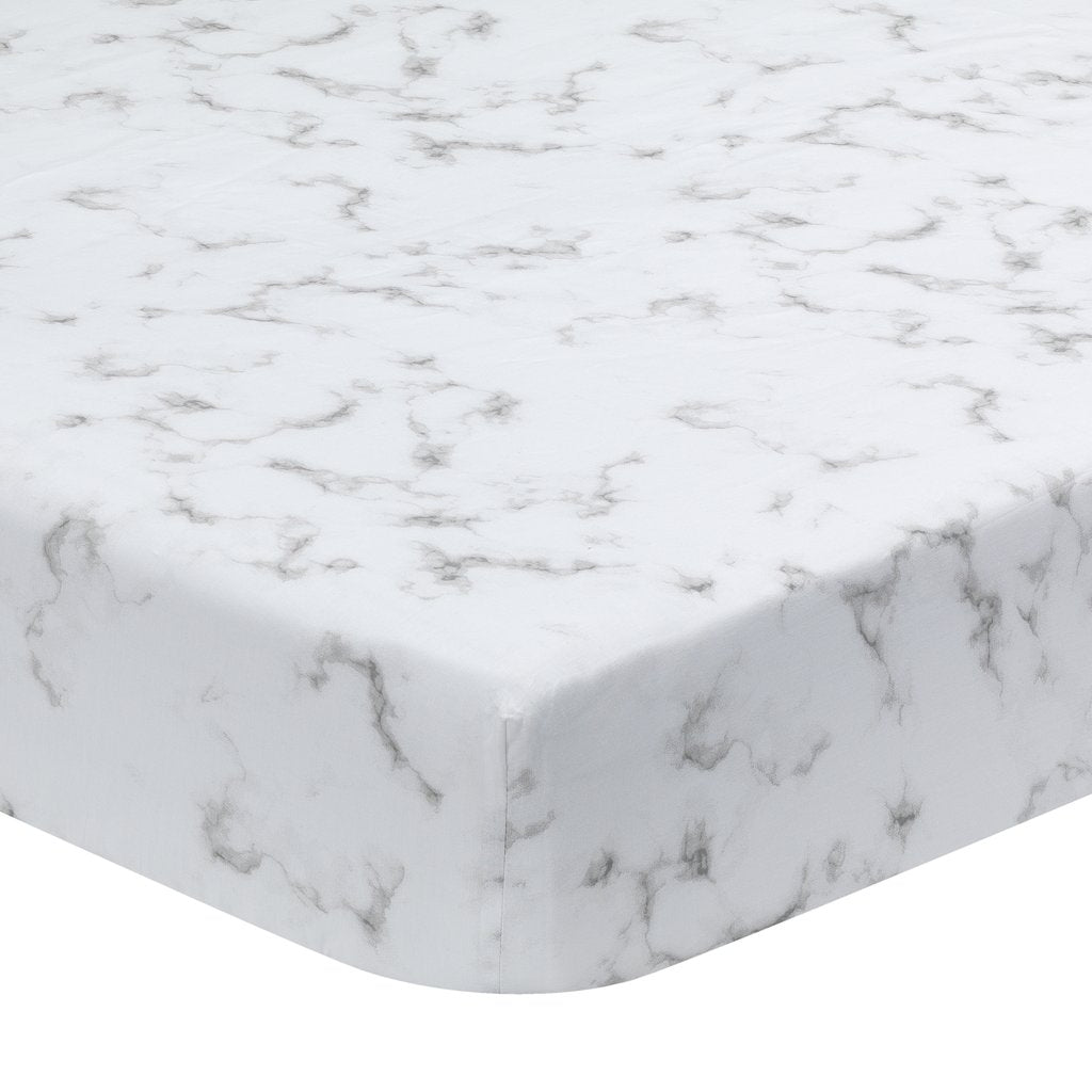 This Lambs & Ivy Signature Gray Marble Crib Sheet is 100% Certified Organic breathable cotton is pure and safe for baby. Its fully elastic perimeter provides a safe and secure fit. The marble design has a watercolor effect and works for boys and girls. It is a perfect blend of style and comfort. Machine washable for easy care.