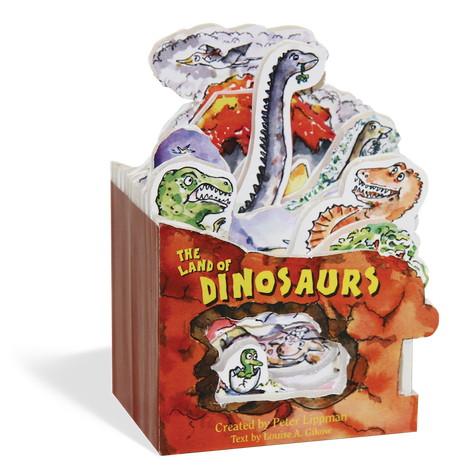 It’s epic—the irresistibly chunky, die-cut Mini House format meets the obsession of dinosaurs. The Land of Dinosaurs expands the bestselling series by breaking the conceit—its first flap isn’t a door to a house or vehicle, but a portal back in time to an exotic land. A tactile treat, so pleasing to hold and flip through, to peer into the die-cut cave and rub fingers along the shape of the dinosaurs, The Land of Dinosaurs is populated with roaring, fighting, swimming, swooping, herding, running dinosaurs, all against a colorful backdrop of jungles, volcanoes, prehistoric seas, and oozing swamps. At the center, a just-hatched baby dinosaur. But what kind? A fierce Tyrannosaurus Rex? The armor-plated Gastonia, or Ankylosaurus, wielding its clublike tail? The peaceful tree-munching giant Brachiosaurus, or the funny-looking Parasaurolophus, with the ducklike beak and operatic voice? The book is a quest, as the reader follows the baby dinosaur on its journey of self discovery. Great fun, an education, a first primer in dinosauriana—it’s a book, it’s a toy, it’s a new land to visit again and again.