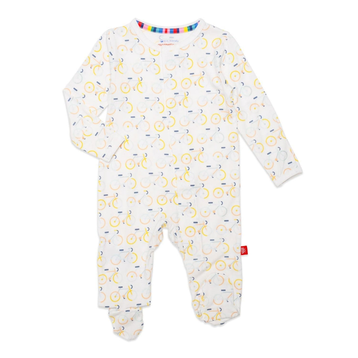 - magnetic closures: magnets line the seam from the neck to upper thigh for sizes up to 0-3m & from neck to crotch for sizes 3-6m and up.