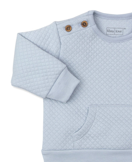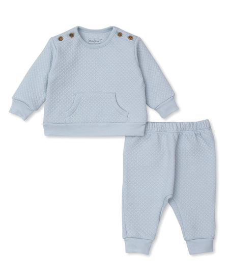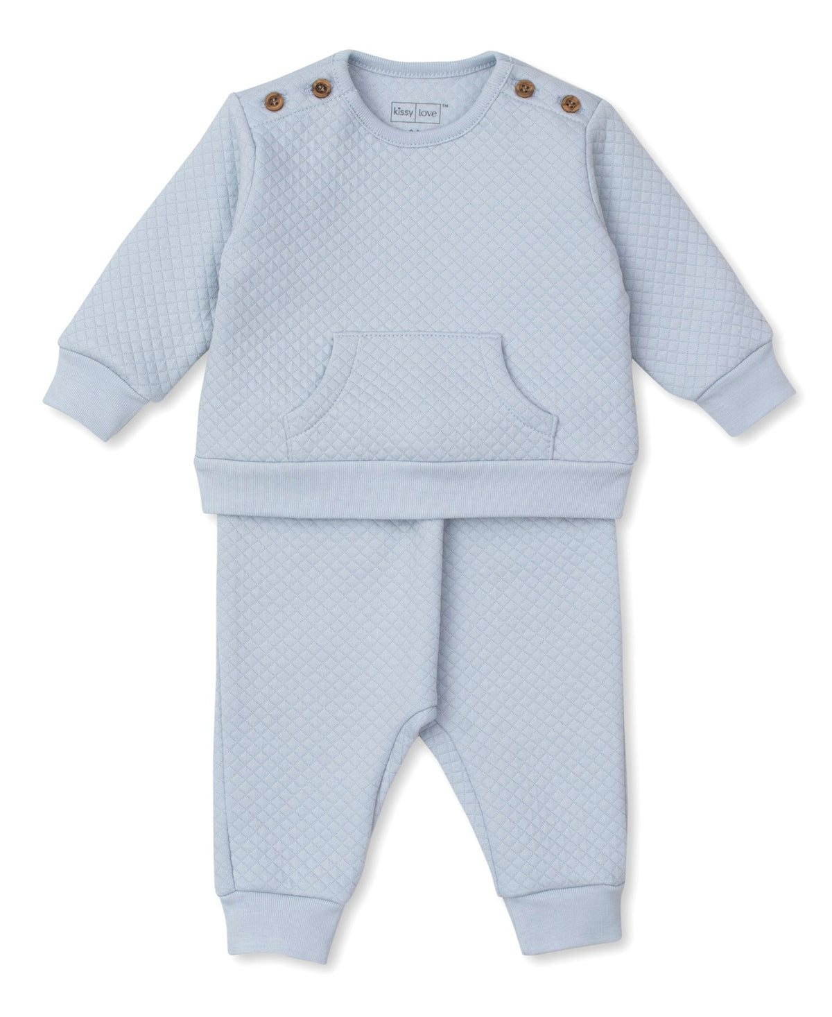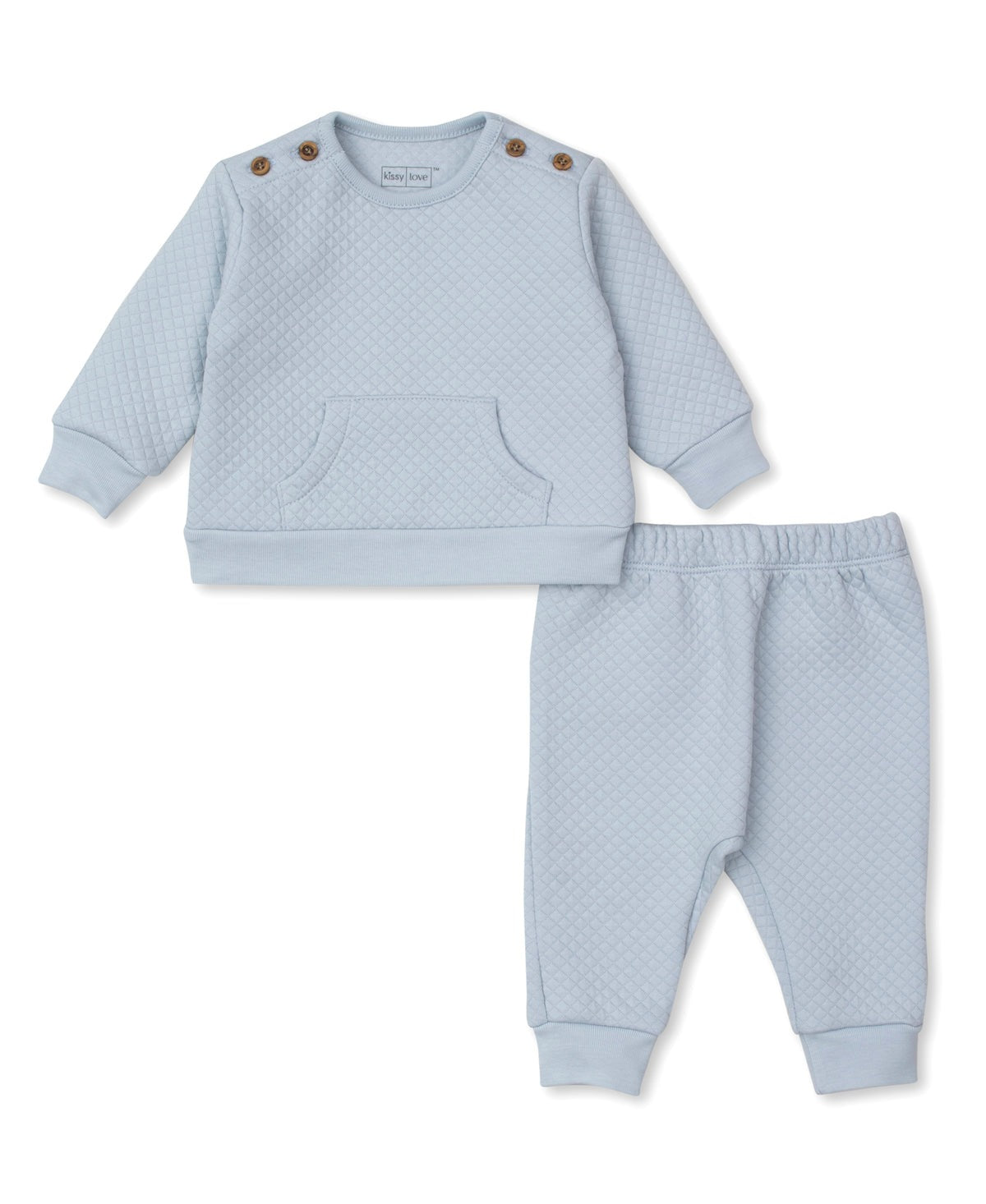 The perfect essential for baby's wardrobe, our simple, light blue jacquard pant set is made from the softest Pima cotton for the ultimate in comfort.