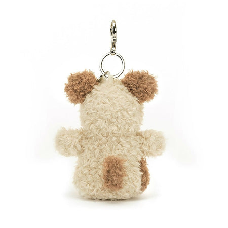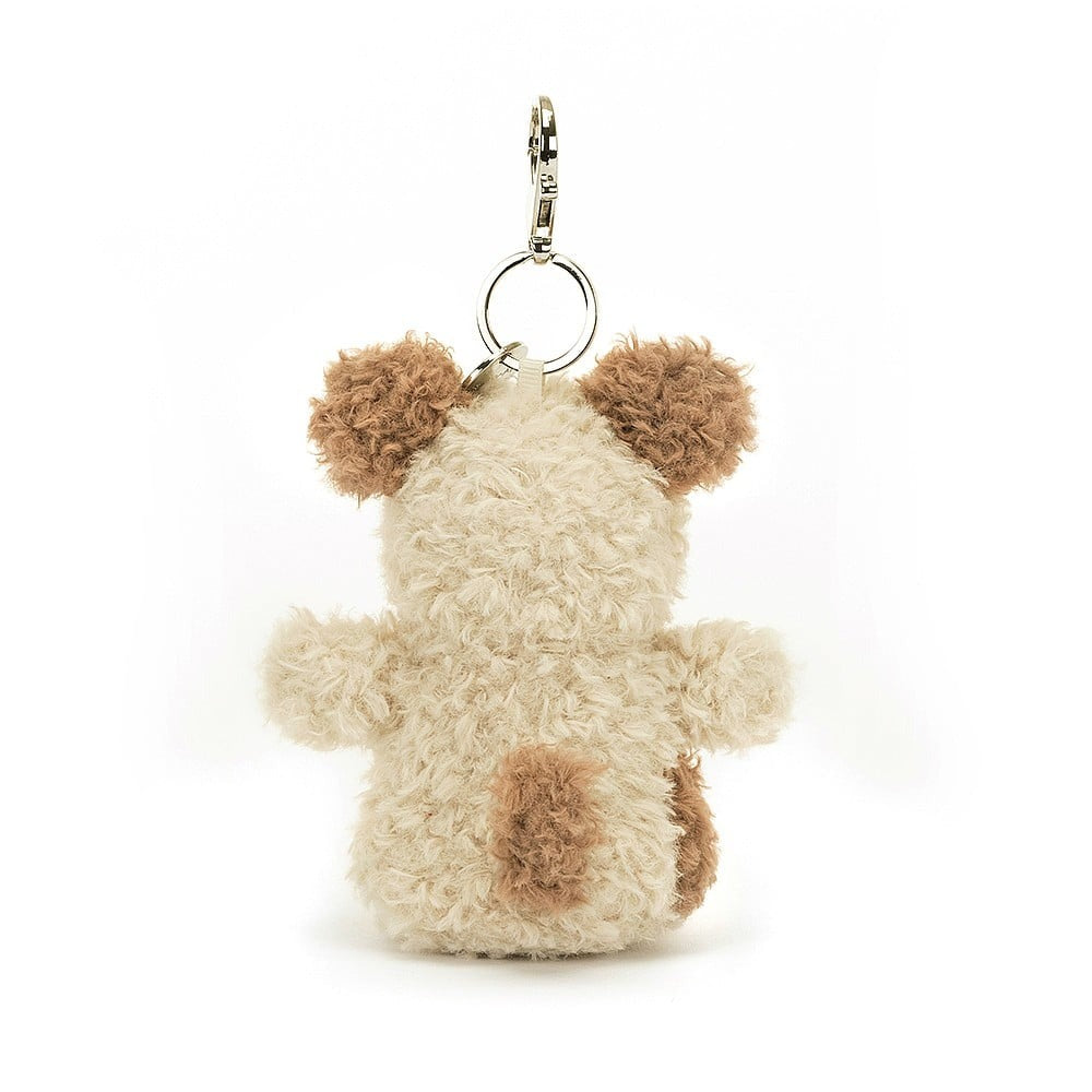 ALittle Pup Bag Charm is adorably tiny, and has a silver chain for a lead! This nougat pup has chocolate patches, perky ears, and a waggly tail, and proudly wears a Jellycat disc. Clip them onto your rucksack, tote or doggy bag!