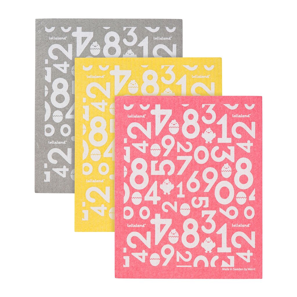 LOLLALAND LOLLALAND SPONGE CLOTHS 3 PACK - RED, YELLOW, GRAY