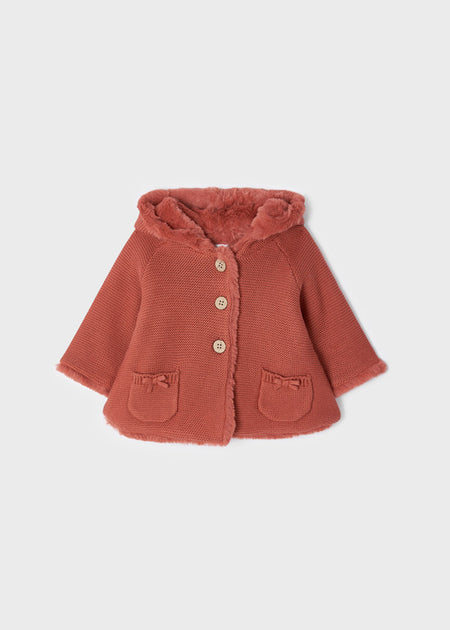 MAYORAL LONG KNITTED CARDIGAN NEWBORN GIRL - BRICK RED