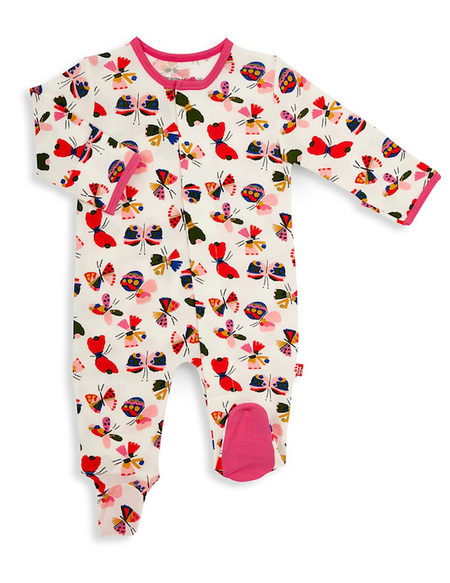 Introducing the Magnetic Me Flitter Flutter Magnetic Footie - Newborn. A soft, stylish all-day and all-night wardrobe staple with smart magnetic fasteners that makes changing time painless. With our no over-the-head design, simply open the outfit, insert baby, and BOOM, DONE! - the footie practically closes itself. Machine wash as directed.