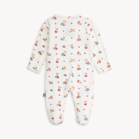- Magnetic closures: magnets line the seam from the neck to upper thigh for sizes up to 0-3m & from neck to crotch for sizes 3-6m and up.