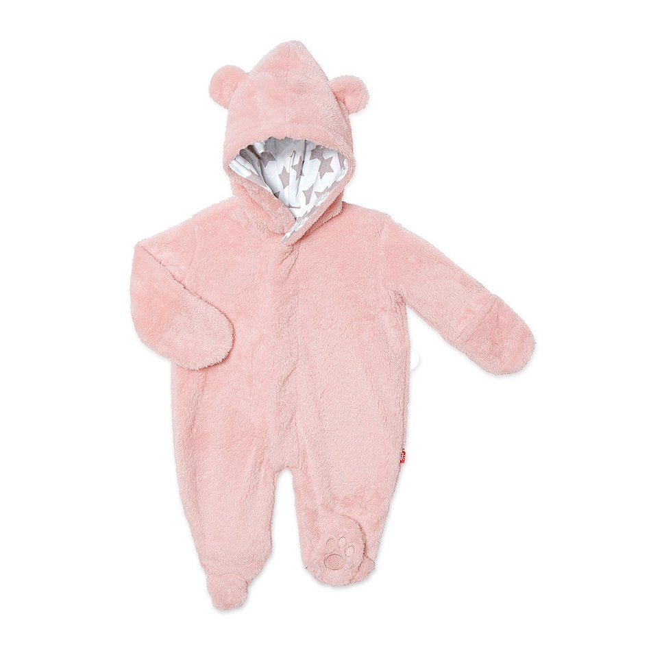 Introducing the Magnetic Me Rose Quartz Minky Magnetic Pram ( Star Liner ) - 6-9 Months. Our little bear suit features our hidden magnetic closures and gets baby ready for cool weather in no time at all! Completely lined from ear to paw in ultra-soft organic cotton for added warmth.  Features attached mittens and embroidered bear feet. No reason to hibernate when your cub looks this cute!