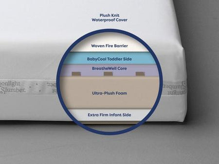 - Dual-Stage Design – Extra-firm infant side + BabyCool™ toddler side