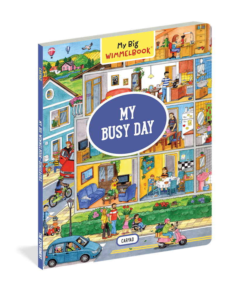 My Big Wimmelbook—My Busy Day invites readers to join a lively group of kids, families, friends, and workers as they go about their normal daily routines. From starting with a healthy breakfast to an exciting day at school, swinging in the park, and more, readers will have a blast recognizing their own daily lives reflected in the many activities packed into this single bustling day in Wimmeltown.