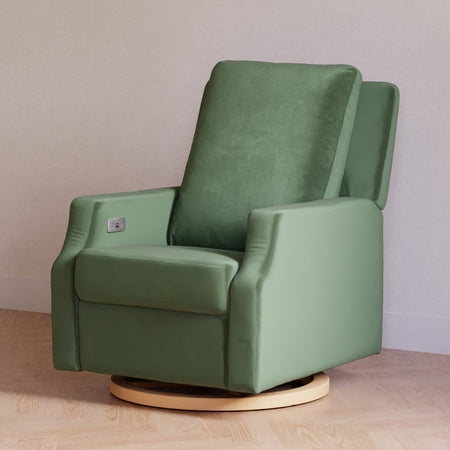 The Crewe Recliner blends form and function with its crisp, contemporary design and comfortable seat. Its smooth, back-and-forth gliding motion helps you rock your baby to sleep with ease, while the plush back cushion, electronic recline mechanism, and convenient swivel create an inviting repose for both you and your baby.