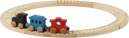 Our Basic Train Set makes a great starter set, easy to add on more pieces later. This 11-piece set includes 17" circle track (8 curved pieces), engine, passenger car, and caboose. All pieces in this set are also available individually. Individual cars measure about 3" long by 2" high each and have a non-toxic finish. Track is grooved for wheels on both sides, sanded smooth with laser-engraved stripes, and is unfinished. All pieces are crafted from locally sourced, sustainably harvested hard maple and are compatible with our, Brio®, Thomas the Tank and other wooden train systems. Car colors may vary from those shown here.