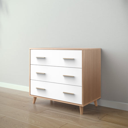 New York single dresser is a space saver and style maximizing instrument. Equipped with three large drawers, it can keep those small rooms neat and comfortable. This dresser is available in standard and two-tone finish but it can also be upgraded with Eco-Leather Inlay in Silver or Copper.