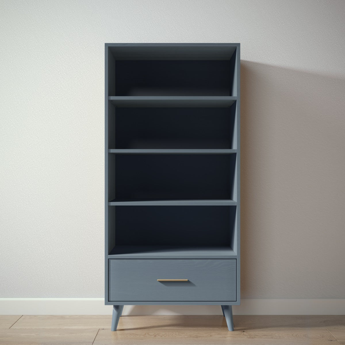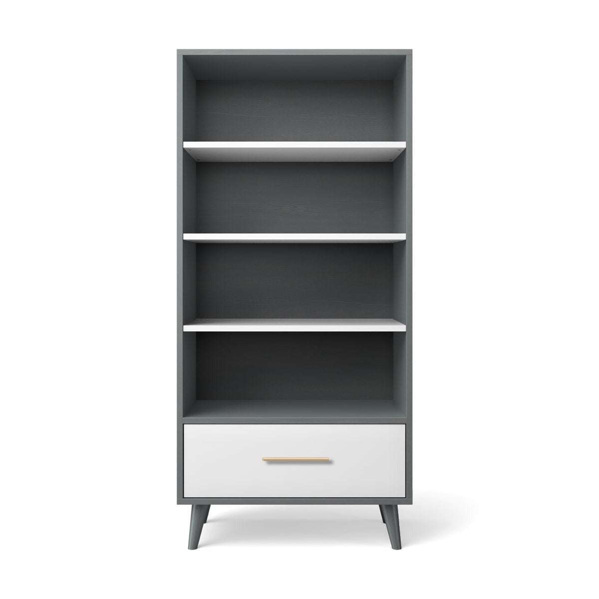 New York bookcase has a contemporary style with mid-century features, making it very functional and versatile. This unit can be used for clothing storage as well as books and other items for your growing child. Available in standard or two-tone finish as well as upgraded configurations like Laser-Cut Applique (Stripe or Circle Pattern) and Eco-Leather Inlay in Silver or Copper.