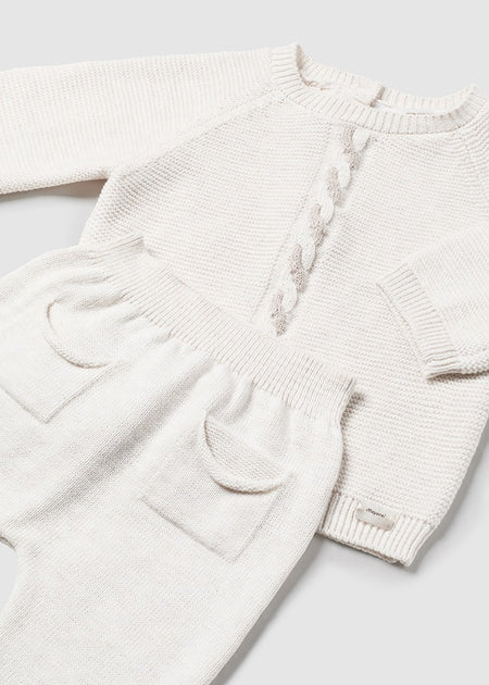 MAYORAL NEWBORN 3 PIECE KNIT SET IN MILK