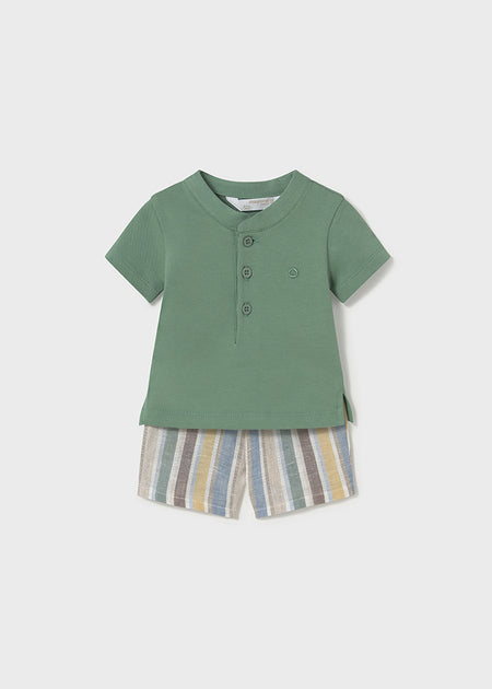 MAYORAL NEWBORN GREEN SHORTS AND POLO SHIRT SET