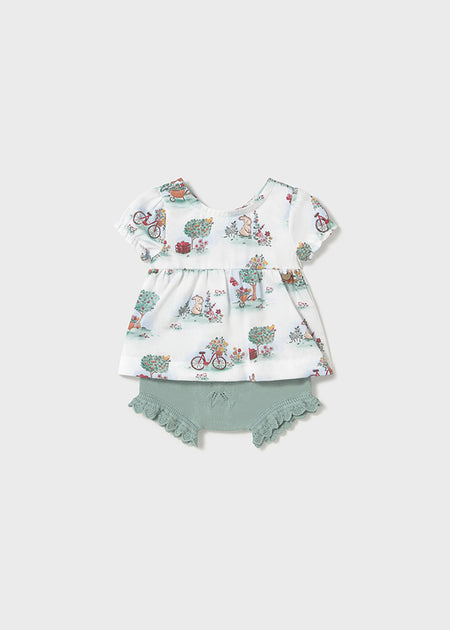 MAYORAL NEWBORN MINT KNIT BLOOMERS AND T-SHIRT SET