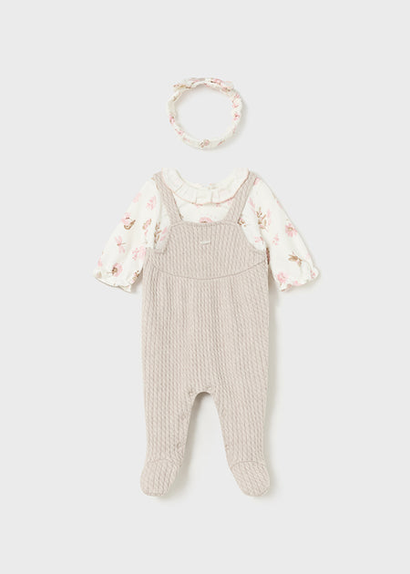 MAYORAL NEWBORN ONE-PIECE WITH HEADBAND IN WALNUT