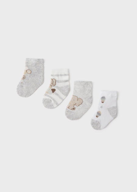 MAYORAL NEWBORN ORGANIC COTTON SOCKS 4-PACK - NATURAL GREY