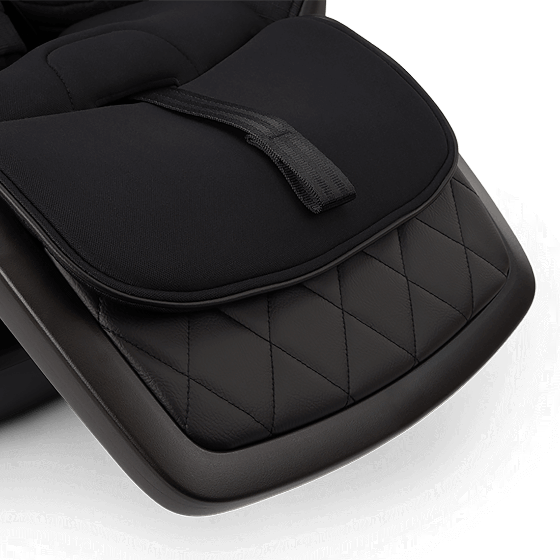 • Leg rest extends to provide up to 2” of additional legroom for forward-facing riders