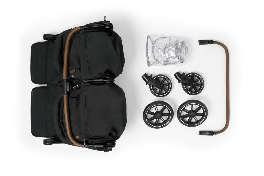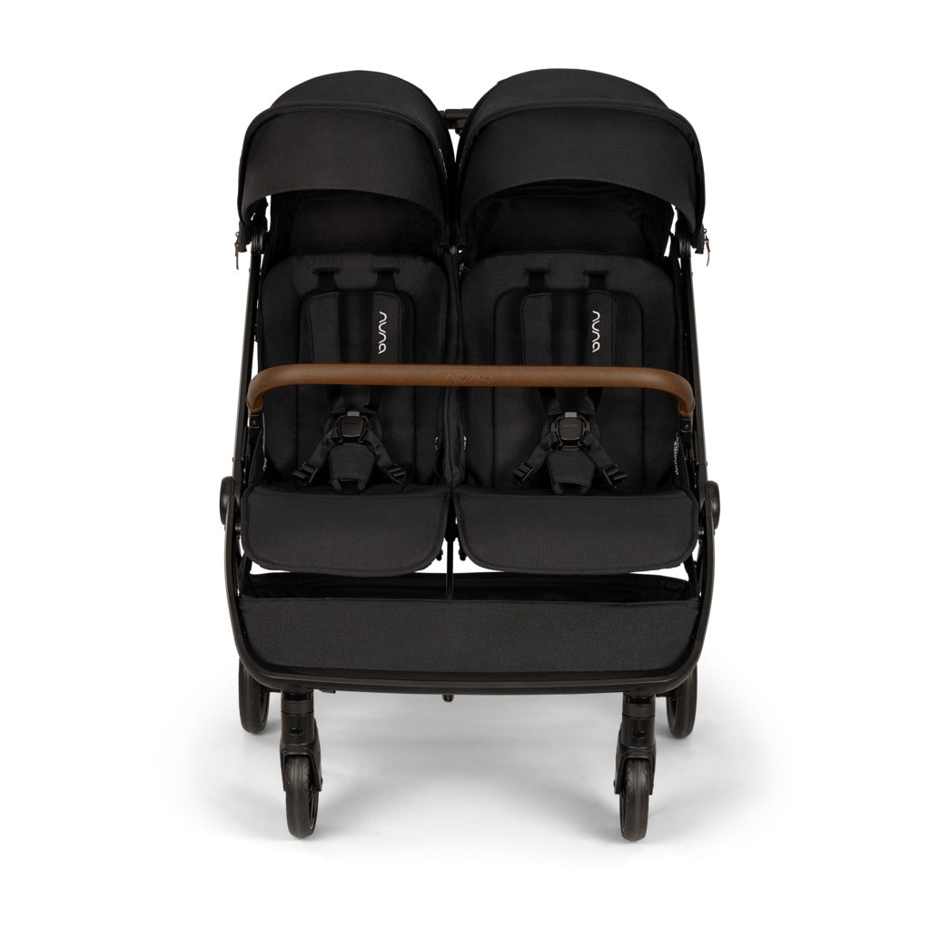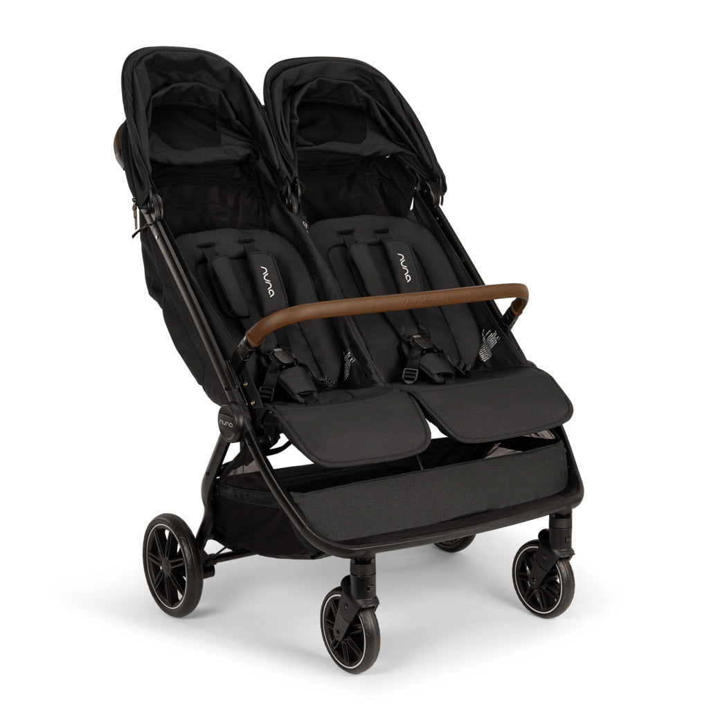 The NUNA TRVL™ dubl is a compact side-by-side double stroller that fits through standard doorways and features independent seats to suit each child's needs for twice the adventures.