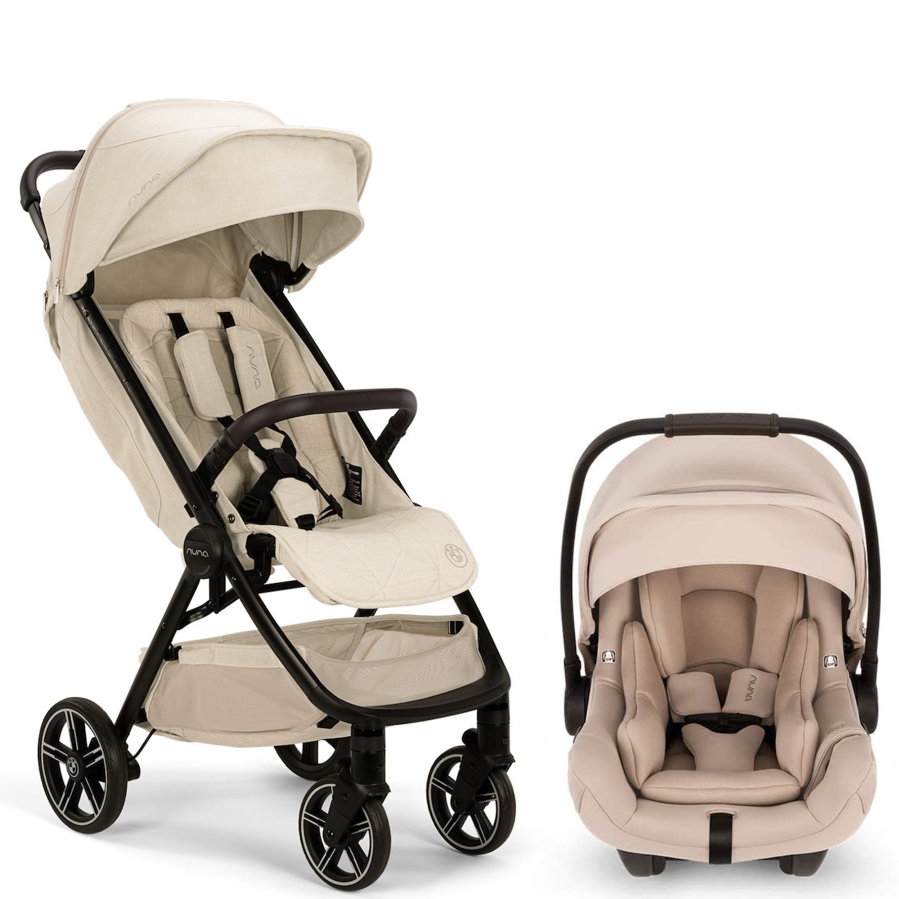 The NUNA x BMW TRVL LX + PIPA AIRE Lightweight Travel System Mica / BIscotti includes the TRVL LX in the Mica fashion paired with the PIPA AIRE in Biscotti to create the perfect lightweight travel system for your new arrival